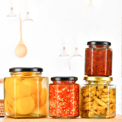 Food High Quality Customized Hexagon Shape Glass Jar for Honey Jams Food Storage with Lid